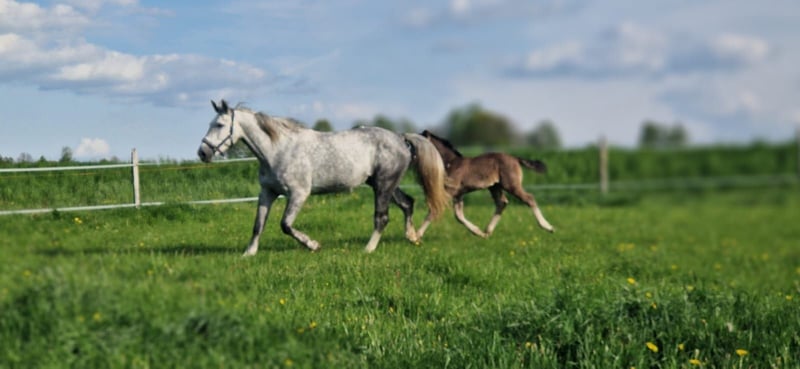 For sale is an impressive mare, a heavy warmblood, born in 2019. With a height of 173 cm, she is ideally suited for leisure activities. The mare impresses with her friendly character. She is well-mannered and shows herself to be somewhat sensitive in handling, but is still calm and reliable. She is backed and always eager to learn. This mare has the potential to become a loyal companion for many enjoyable hours. She is a daughter of Eckstein Eminenz and is also suitable for breeding. If you are interested or need further information, please feel free to contact me.