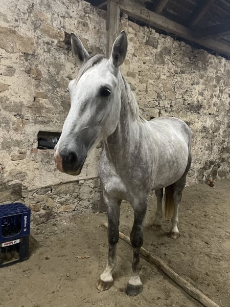 Zum Verkauf steht unsere 6 jährige Schimmelstute ,,Soraya,, sie ist ein Schweres Warmblut aber vom Typ schon edler und sportlicher gezogen. Sie hat ein Stockmaß von 1,73m und ist somit eine Stattliche junge Dame. Soraya hat einen liebevoller Charakter, der immer gefallen möchte und sehr Menschen bezogen ist. Sie ist gut erzogen, zeigt sich aber im Umgang etwas sensibel ist trotzdem brav und zuverlässig. Sie ist angeritten und immer lernwillig. Am besten ist für sie eine feste Bezugsperson die Ihr bei kleinen Unsicherheiten die Angst nimmt. Sie hatte bereits ein Fohlen. Und wäre natürlich auch für die Zucht gut geeignet. Eine Besichtigung und Probereiten ist nach Absprache möglich. Bei Interesse oder für weitere Informationen stehe ich Ihnen gerne zur Verfügung.