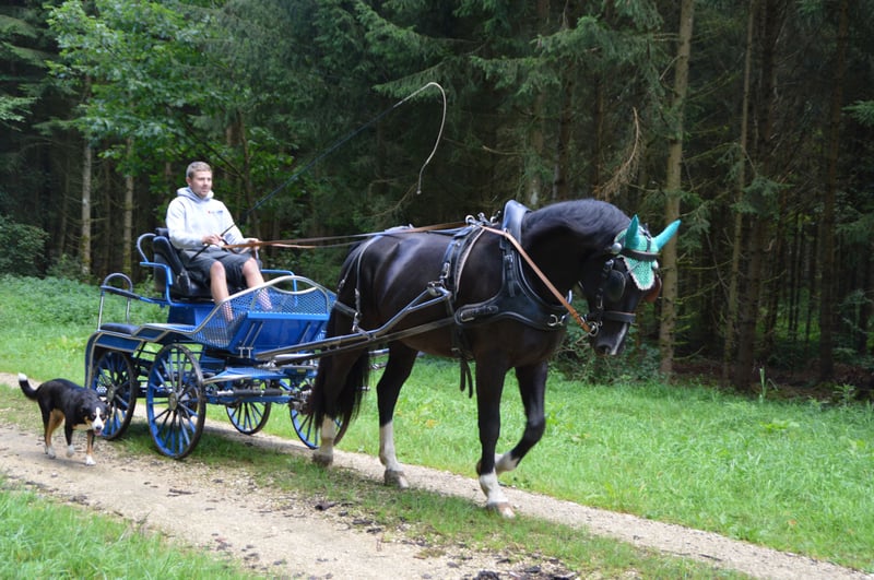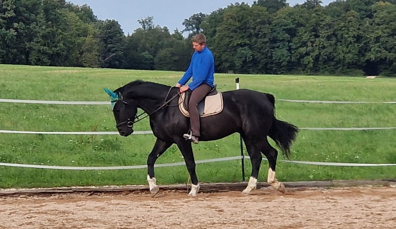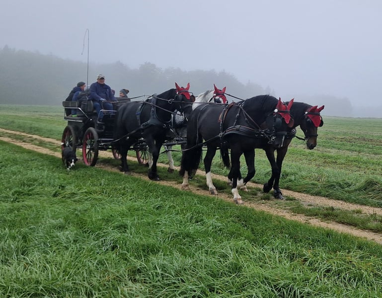 Unser 3,5-jähriger Wallach (Sächs.-Thür. Schwerer Warmblut) ist sehr brav im Umgang und arbeitswillig. Er wird in der Kutsche ein-, zwei und vierspännig gefahren. Unter dem Sattel zeigt er alle drei GGA schwungvoll und bringt Potential für mehr mit sich. Sowohl beim Reiten als auch beim Kutsche Fahren zeigt er sich stehts lernwillig und engagiert. Bei Interesse und/oder weiteren Fragen melden Sie sich gerne unter der Nummer: 01749203145