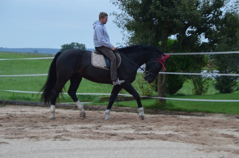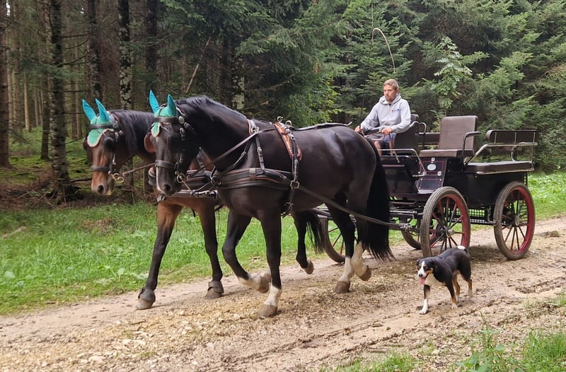 Our 3.5-year-old gelding (Saxon-Thuringian Heavy Warmblood) is very well-behaved and eager to work. He is driven in a carriage as a single, pair, and four-in-hand. Under saddle, he demonstrates all three gaits with enthusiasm and shows potential for further development. Both in riding and carriage driving, he consistently displays a willing attitude and engagement. If you are interested or have any further questions, please feel free to contact us at: 01749203145.