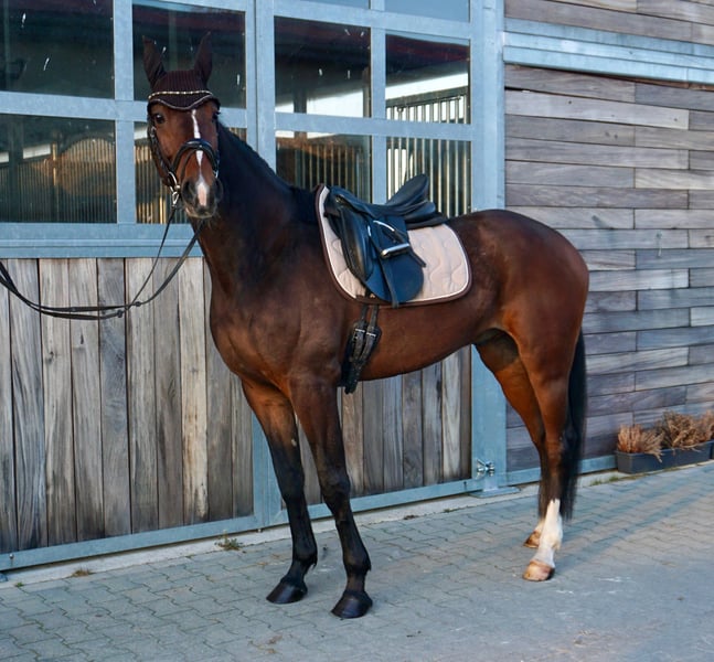 🦋 JIM 🦋 7 years old Approximately 1.60 m (16.1 hh) Healthy and well-behaved both on the ground and under saddle. His progeny also compete in jumping up to L level and in dressage at A level. Mainly ridden in the field. ✔️ Loadable without issues ✔️ Hacks out alone as well as in a group ✔️ Pleasant to handle daily ✔️ Gets along well with other horses and is accustomed to larger groups in the pasture A very good horse for leisure riders seeking a reliable partner with quality, character, and potential for further development. ⸻ 📞 Contact & Viewing Please inquire by phone: 📞 0341 / 98995223 Monday–Friday 09:00–18:00 Saturday 09:00–15:00 🚫 Closed on Sundays ⸻ 🐎 Trial riding 💶 €30 per horse (up to 2 riders) → credited towards purchase price 💶 Holidays: €50 Please cancel at least 24 hours before the appointment; otherwise, the fee will be charged. 💶 Demonstration by our trainers (without trial riding / groundwork etc.): €25 per horse ⸻ Purchase examinations can of course be carried out by your veterinarian or ours. We also gladly assist with transport to the new home. 🌐 www.deutsche-pferde-boerse.de Other interesting sale horses are available at our sales stable and on our website. Note: The height measurements are estimates provided by the seller and do not constitute guaranteed properties.