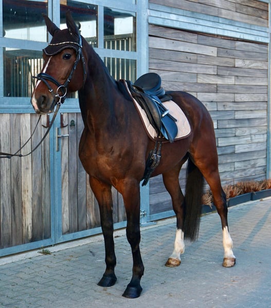 🦋 JIM 🦋 7 jaar oud ongeveer 1,60 m gezond en braaf in omgang en tijdens het rijden, andere nakomelingen lopen ook in springen tot L en in dressuur A voornamelijk in het terrein gereden ✔️ Ladenproof ✔️ Gaat alleen of in groep het terrein op ✔️ Aangenaam in dagelijks gebruik ✔️ Vertrouwd met andere paarden en kent grotere groepen op de wei Een zeer geschikt paard voor recreatieruiters die op zoek zijn naar een betrouwbare partner met kwaliteit, karakter en potentieel voor verdere ontwikkeling. ⸻ 📞 Contact & bezichtiging Aanvragen graag telefonisch via: 📞 0341 / 98995223 🕘 Ma.–Vr. 09:00–18:00 uur 🕘 Za. 09:00–15:00 uur 🚫 Zondag gesloten ⸻ 🐎 Proefritten 💶 30 € per paard (max. 2 ruiters) → wordt bij aankoop verrekend 💶 Feestdagen: 50 € Annuleringen graag minimaal 24 uur voor de afspraak, anders wordt deze in rekening gebracht. 💶 Demonstratie door onze instructeurs (zonder proefrit / grondwerk etc.): 25 € per paard ⸻ Aankoopkeuringen kunnen uiteraard door uw eigen dierenarts of onze dierenarts worden uitgevoerd. Bij transport naar een nieuw huis helpen wij ook graag. 🌐 www.deutsche-pferde-boerse.de Meer interessante verkooppaarden vindt u in onze verkoopstal en op onze website. Let op: Schattingen van de stokmaat zijn van de verkoper en vormen geen gegarandeerde eigenschappen.