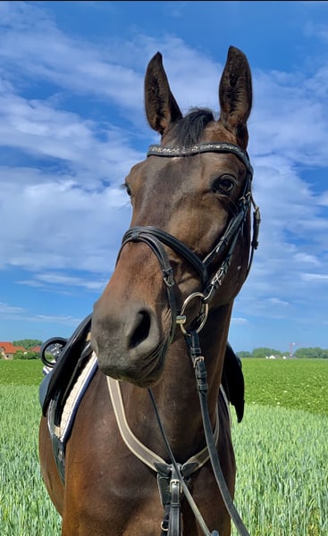 Sehr rittige Stute mit genügend Go, motiviert, willig, schön zu reiten, L Springen gewonnen, direkt vom Züchter gekauft.