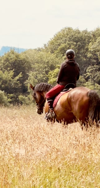 Italiano Vendo la mia cavalla di 17 anni, non riesco più a darle giustizia. È un'assoluta garanzia di vita. Bambini o principianti possono montarla senza problemi. Assolutamente tranquilla. Nel prezzo è incluso il suo saddle misura S, che ha solo 3 mesi. Ha un referto da quando ha 4 anni, ma non le dà fastidio. Va da sola così come in gruppo nel terreno. È un po' arrugginita, è addestrata fino al livello M di dressage.