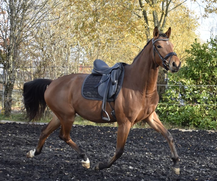 Versatile Premium Mare For sale is this stylish mare by Syriano, the successful son of Gribaldi. She is out of a premium mare mother by Kaiserkult x King Arthur. This mare impresses with three good basic gaits, absolute confidence, and strong nerves. She always wants to please and learns incredibly quickly. She is very well started under saddle, both in the riding arena and indoors, has already been out on trails, traveled in a trailer, and is familiar with everything a young horse needs to know. She has currently been measured at 165cm. She has always been healthy and is looking forward to a sporty future. Further information and videos available upon request with contact details.