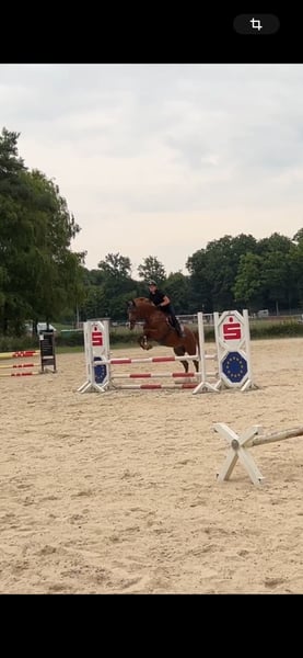 Zum Verkauf steht dieser hübsche 16-jährige Fuchswallach mit einem Stockmaß von ca. 164cm mit dem Spitznamen Fanta. Er ist bereits S-platziert und geht zurzeit mit einem Mädchen E und A Springen. Man kann mit ihm alleine und in der Gruppe ins Gelände gehen. Fanta ist sehr verschmust und hat keinerlei Unarten wie steigen, bocken, treten und beißen. Beim reiten versucht er es immer dem Reiter gerecht zu machen sowohl beim springen als auch in der Dressur. Auf dem Turnier im Parcour weiß er genau was er zu tun hat und kennt seinen Job und verzeiht auch mal Fehler des Reiters und schlechte Distanzen. Wir könnten uns für Fanta einen Reiter mit etwas Reiterfahrung vorstellen, der vielleicht auch den Fuß im Turniersport fassen möchte aber auch einfach zum Spaß und lieb haben. Bei Videos und wirklichem Interesse gerne melden! Er befindet sich Nähe Saarburg.