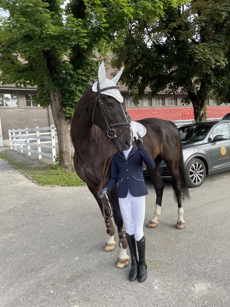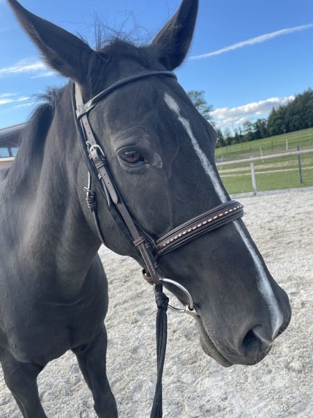 Fortissimo ist ein 15-jähriger, grosser, schwarzer Wallach mit bestem Charakter und viel Erfahrung. Er ist ausgesprochen lieb, menschenbezogen und im täglichen Umgang absolut unkompliziert. Er wurde regelmäßig von Kindern geritten und begleitet die damals 13-jährige Tochter zuverlässig durch ihre reiterliche Entwicklung. Gemeinsam haben sie das Reitbrevet absolviert und erfolgreich Springprüfungen der Kategorie A bestritten, in denen Fortissimo mehrfach klassiert war. Dabei zeigte er sich stets brav, nervenstark und verlässlich. Am liebsten ist Fortissimo jedoch im Gelände, dort ist er ausgeglichen und Verkehrssicher. Er kennt alle Art von Tieren (Ziegen, Schafe, Kühe, Störche usw.) und liebt Hunde. Im Gelände ist er sich ein Handpferd gewohnt und mag das auch sehr. Er kann selbst jedoch auch als Handpferd geführt werden. Der Verkauf erfolgt ausschließlich aus Zeitgründen: Die junge Reiterin hat sich sportlich weiterentwickelt und ist mittlerweile auf ambitioniertere Pferde umgestiegen. Auch die Mutter, welche Fortissimo freizeitmäßig geritten ist, kann ihm aufgrund der intensiven Turnierbegleitung der Tochter nicht mehr die nötige Zeit widmen. Fortissimo hat jemanden verdient der mit Ihm gerne Zeit verbringt und seine liebe Art schätzt. Unter dem Sattel präsentiert sich Fortissimo ausgeglichen, ehrlich und angenehm zu reiten. Er kennt Halle, Platz, Gelände und Galoppbahn und ist brav beim Putzen, Satteln, Schmied und Tierarzt. Zudem ist er problemlos zu Verladen. Ein beeindruckender Wallach mit ruhigem Wesen und schöner Ausstrahlung – ideal für Familien, Junioren oder Freizeitreiter, die einen sicheren, erfahrenen Partner suchen und ihm weiterhin eine liebevolle Aufgabe bieten möchten. Er ist seit 6-Jährig in unserem Besitz und war in dieser Zeit nie krank oder lahm. Er ist normal beschlagen.